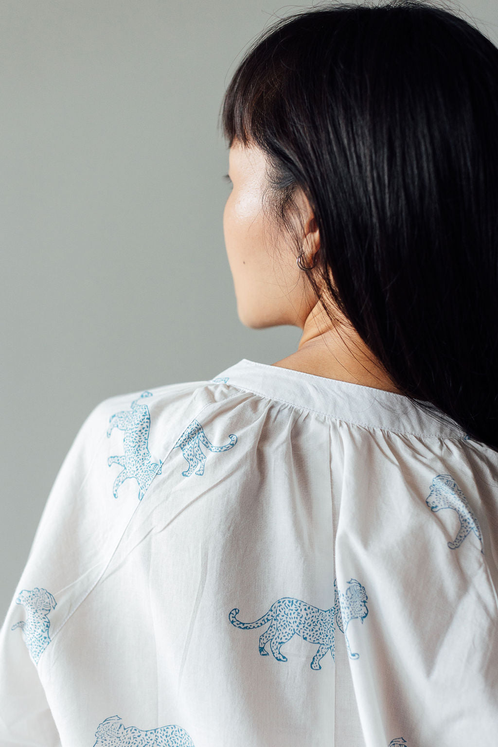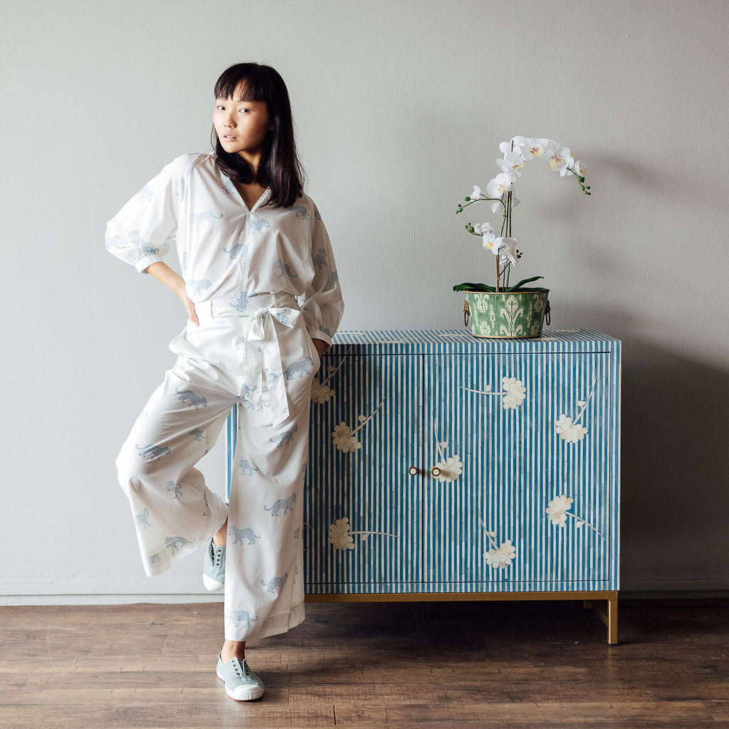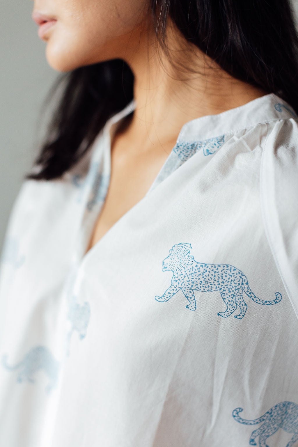 Meet our Brompton Shirt in a delightful Blue King Leopard Block print. Yes our leopard decided to wear a royal Indian turban! The Shirt is available in 3 different sizes. You can pair it with our block printed Ginza Flared Trousers or your own favourite trouser, short or skirt.