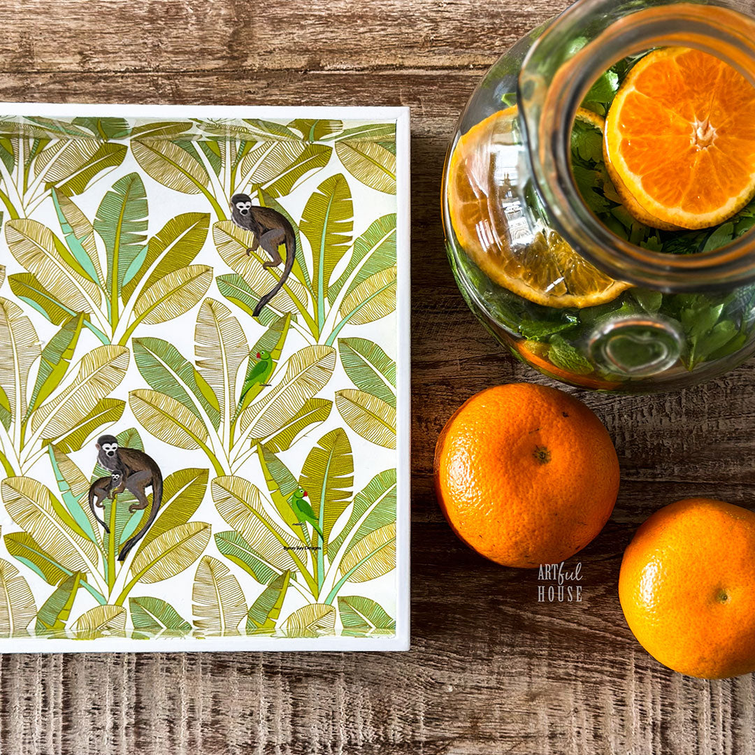 Monkeying around in Bukit Timah: Byron Bay Designs Bukit Timah Tray is a reminder for all of us who live in a city in a jungle with monkeys paying house calls and birds providing background music. Perfect for serving up Summer Quenchers.