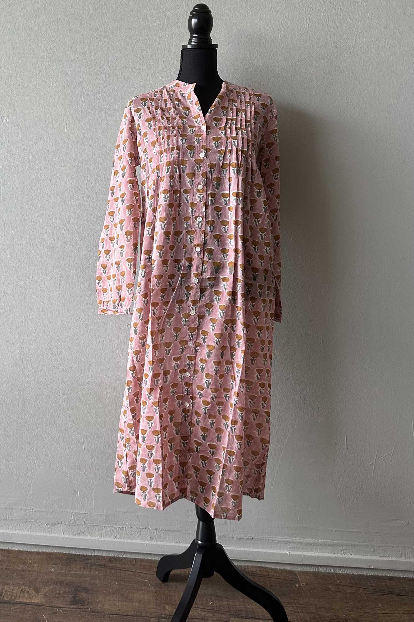 Dusky Pink Raw Sienna Indian Print Cotton Midi Dress