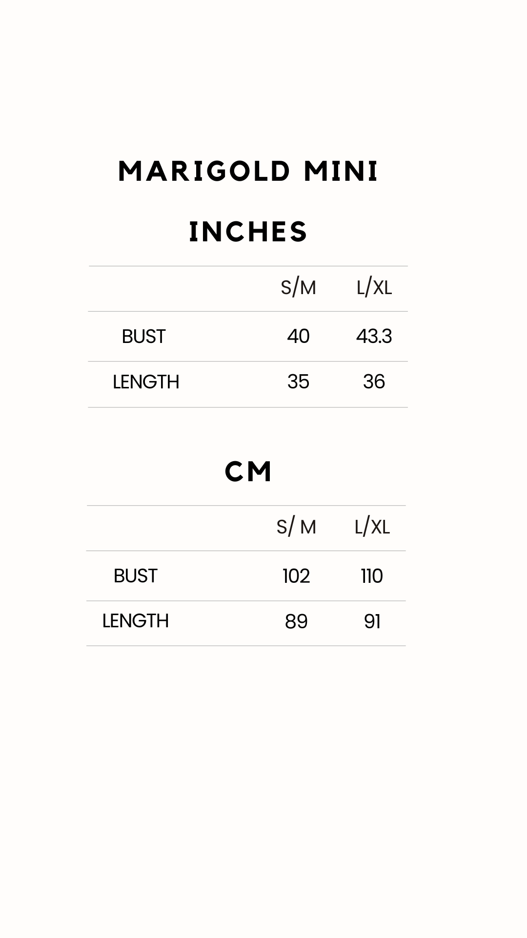 Sizing Chart available in photographs