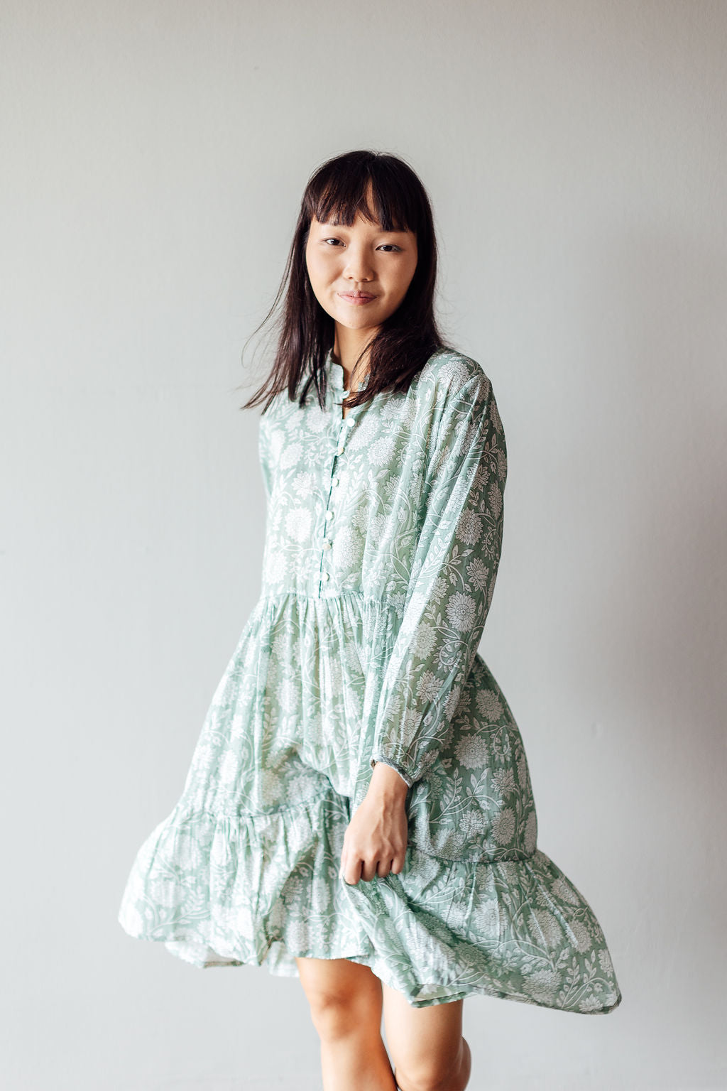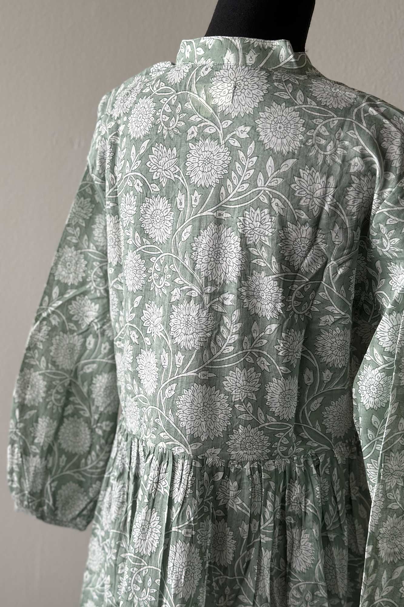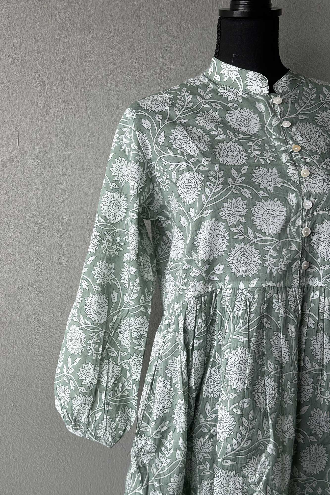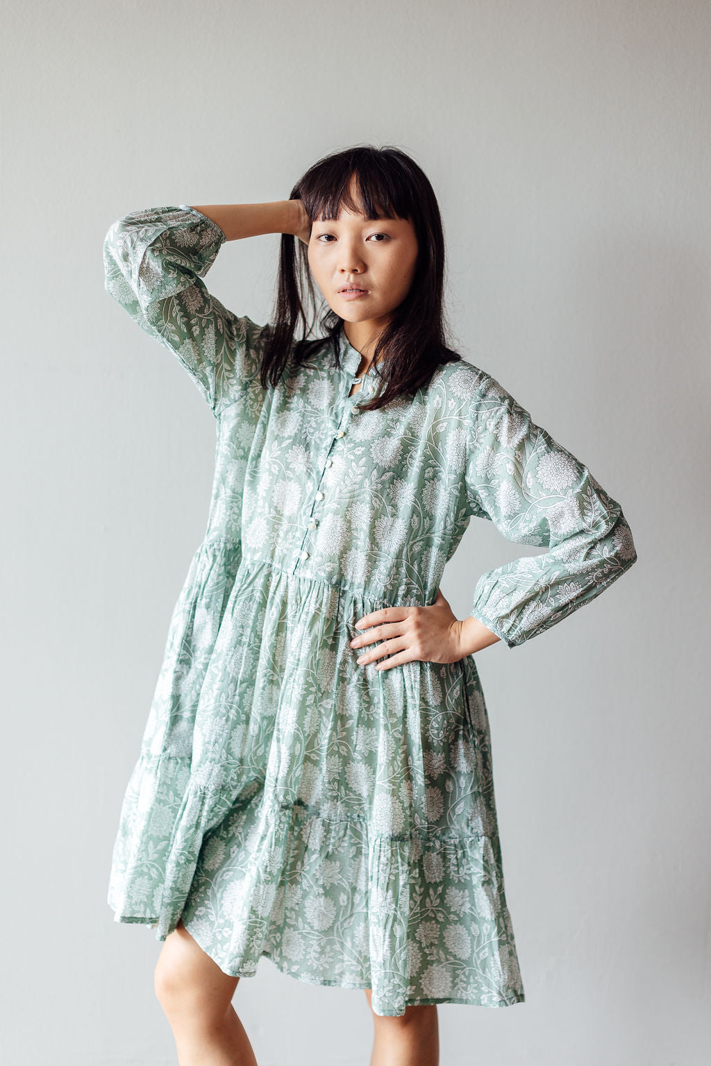 The Lily Mini is a fun, easy to wear dress and we are sure it’s going to give a nice spring to your step. The dress is made of cotton printed in a beautiful pale green shade and patterned with white flowers.
