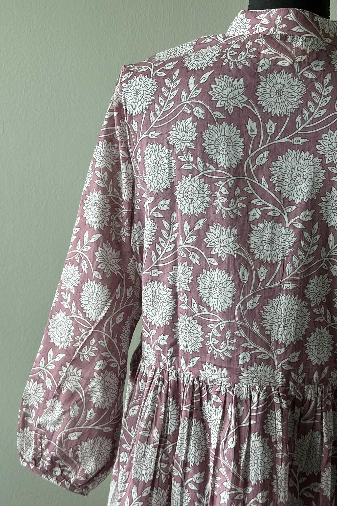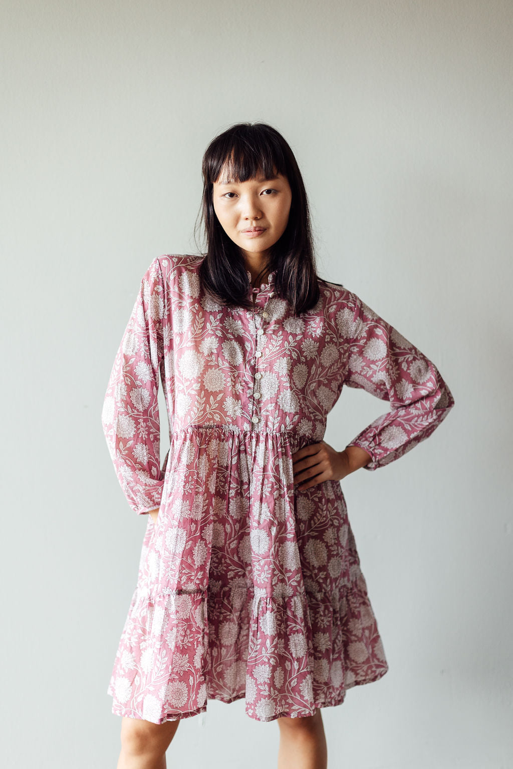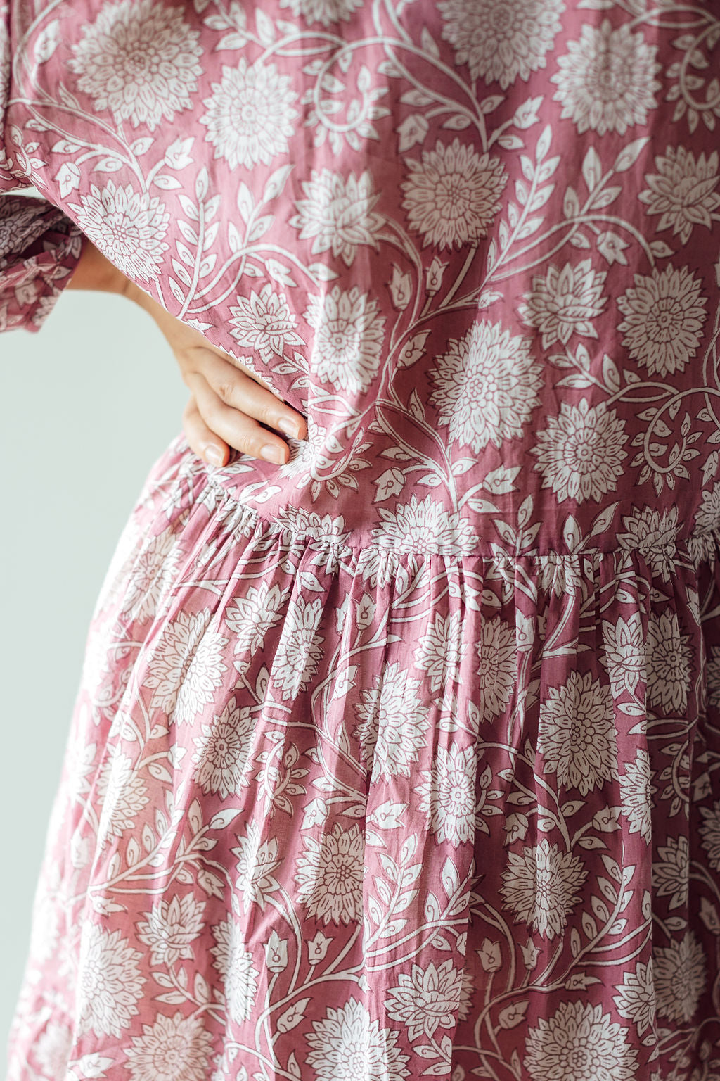 Tea Rose Pink Lily Mini Indian Cotton Print Dress