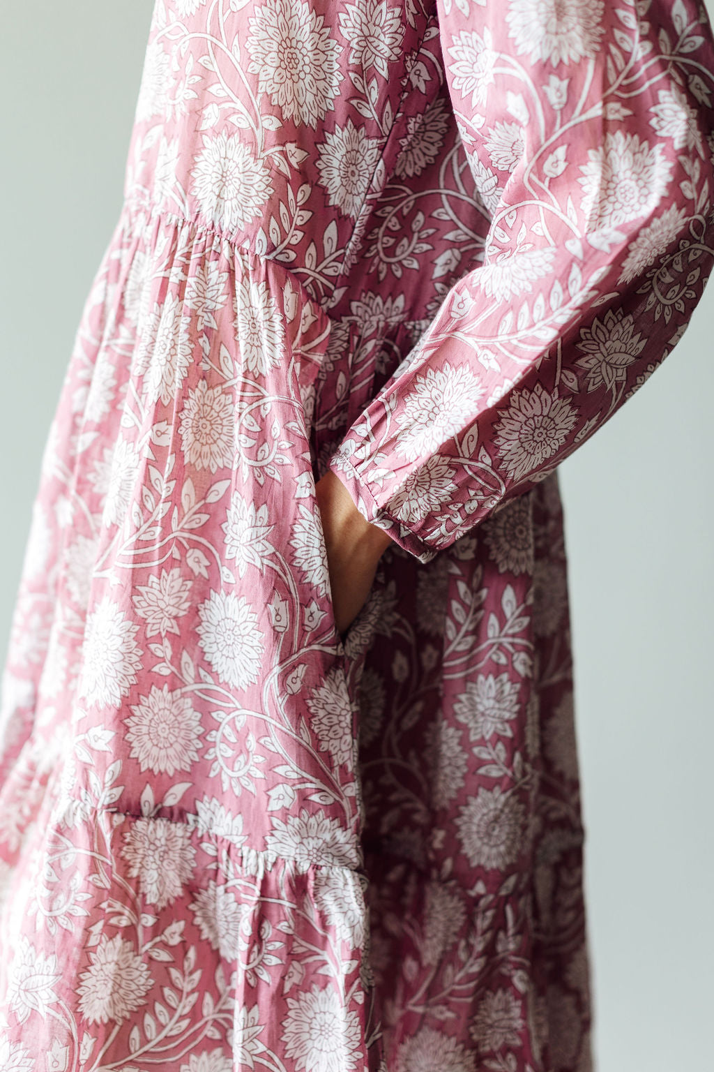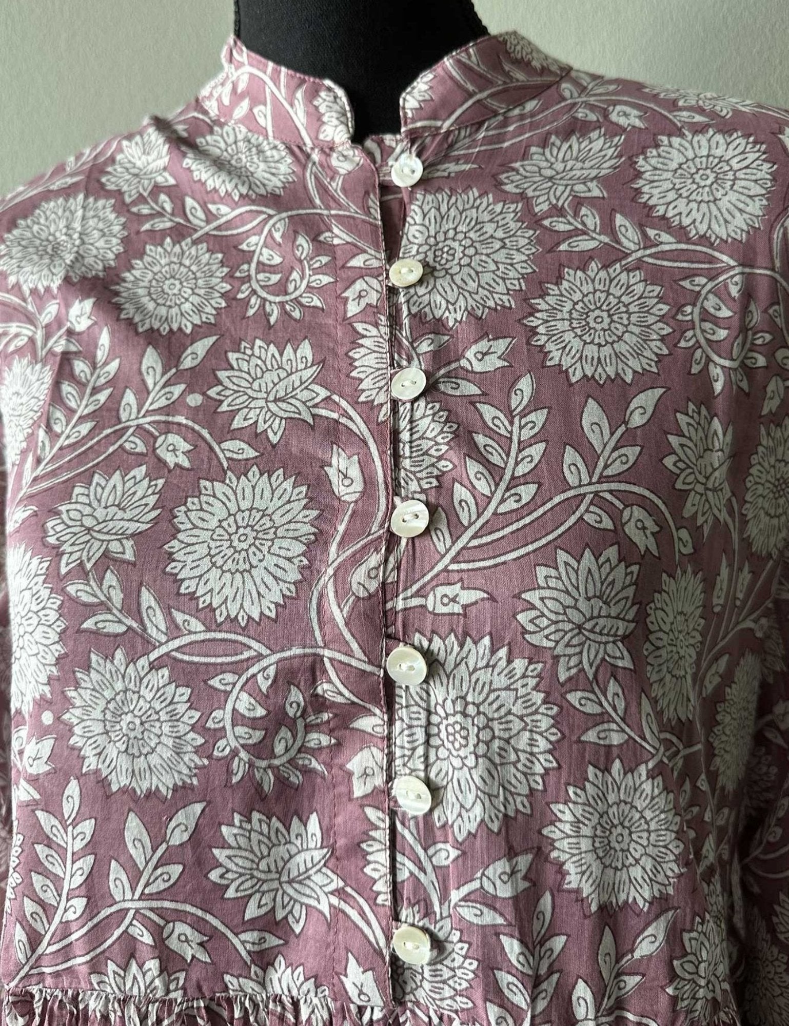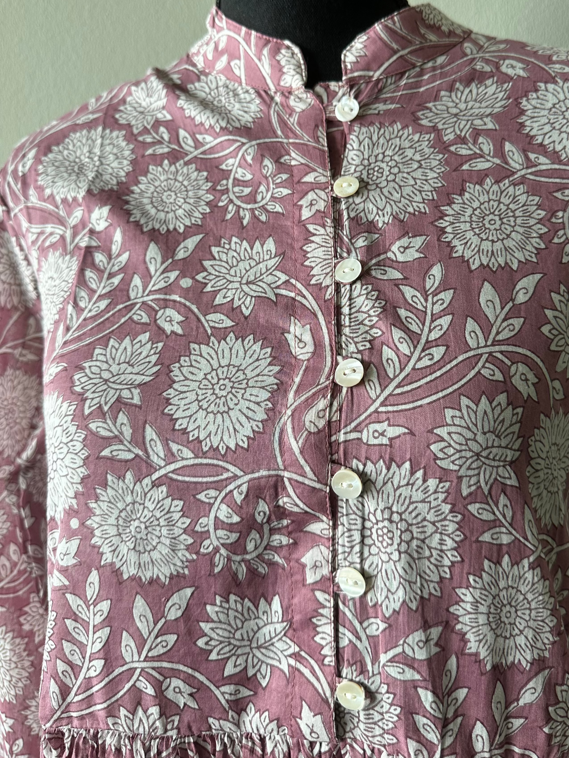 Tea Rose Pink Lily Mini Indian Cotton Print Dress